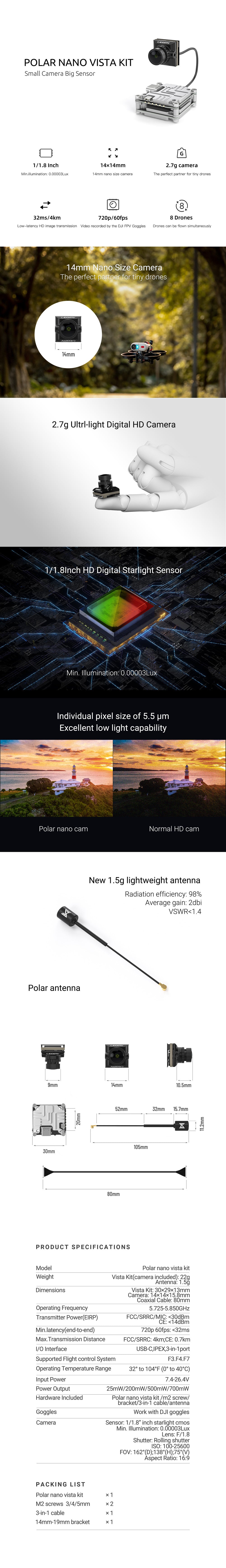 Caddx Polar Nano Vista Kit with 14mm Nano Size Camera